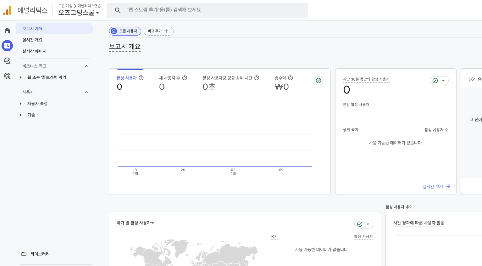 구글 애널리틱스 사용법 (오즈코딩스쿨 실습)