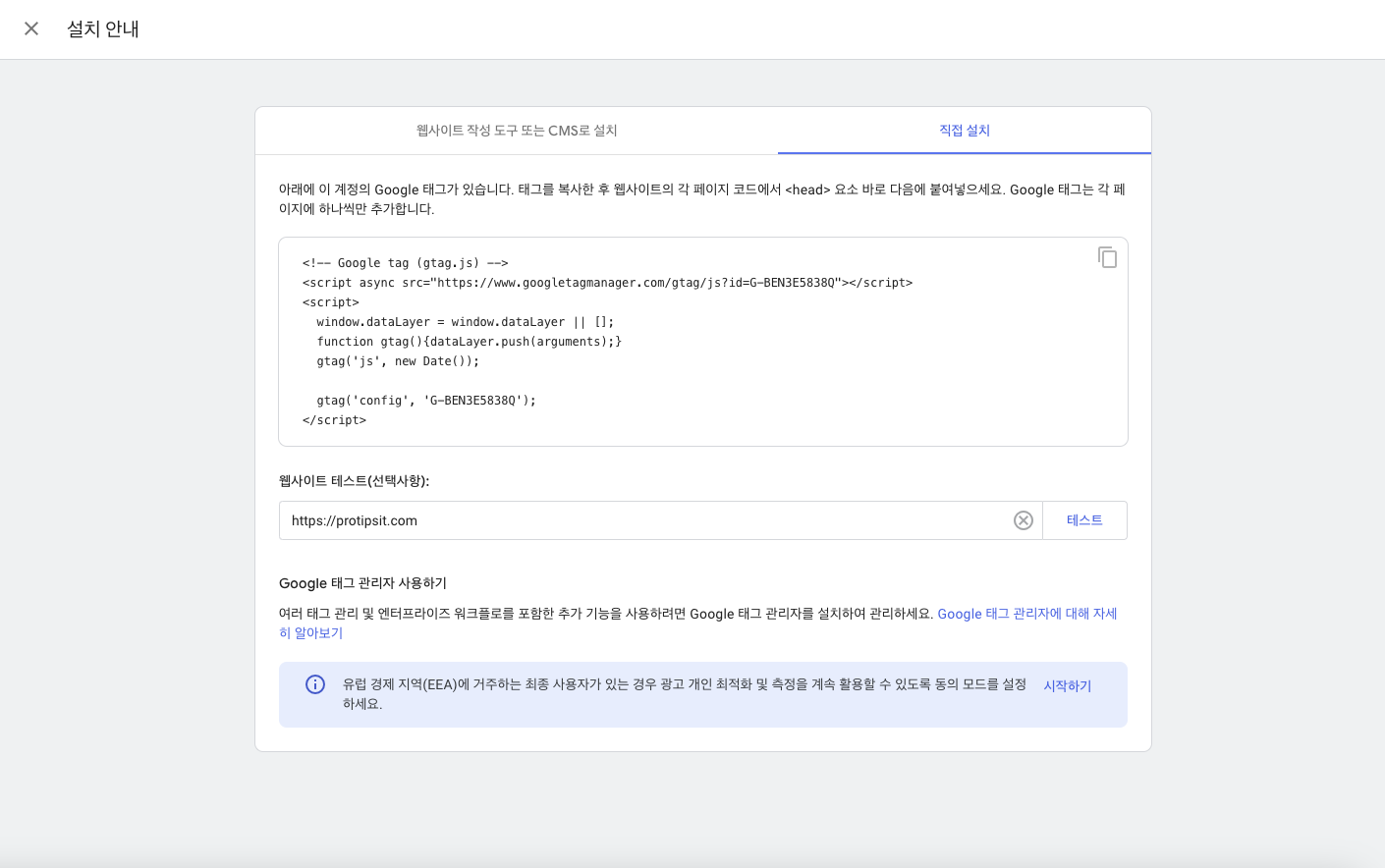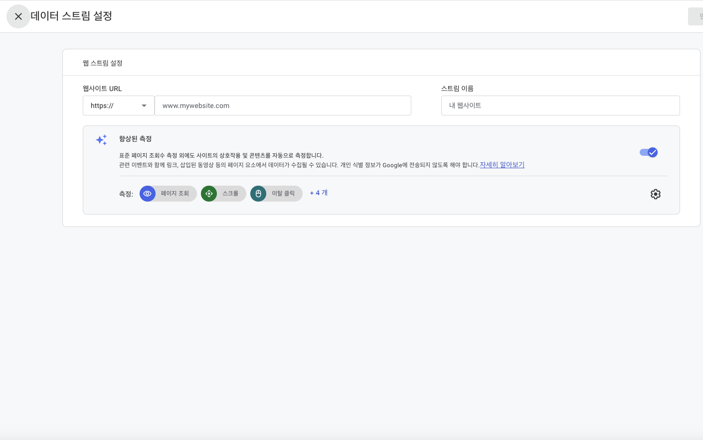 클릭한 다음, 아까 복사했던 측정ID를 이곳에 붙여넣기 하면 완성.