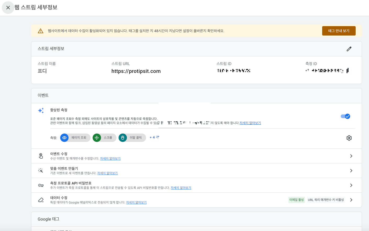 클릭한 다음, 아까 복사했던 측정ID를 이곳에 붙여넣기 하면 완성.