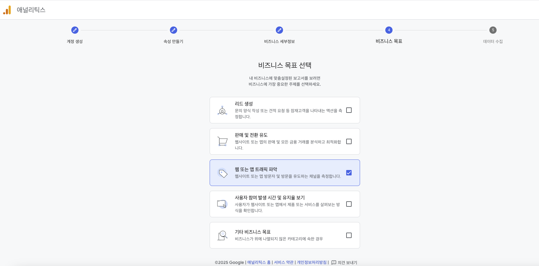 웹 또는 앱 트래픽 파악을 클릭합니다.