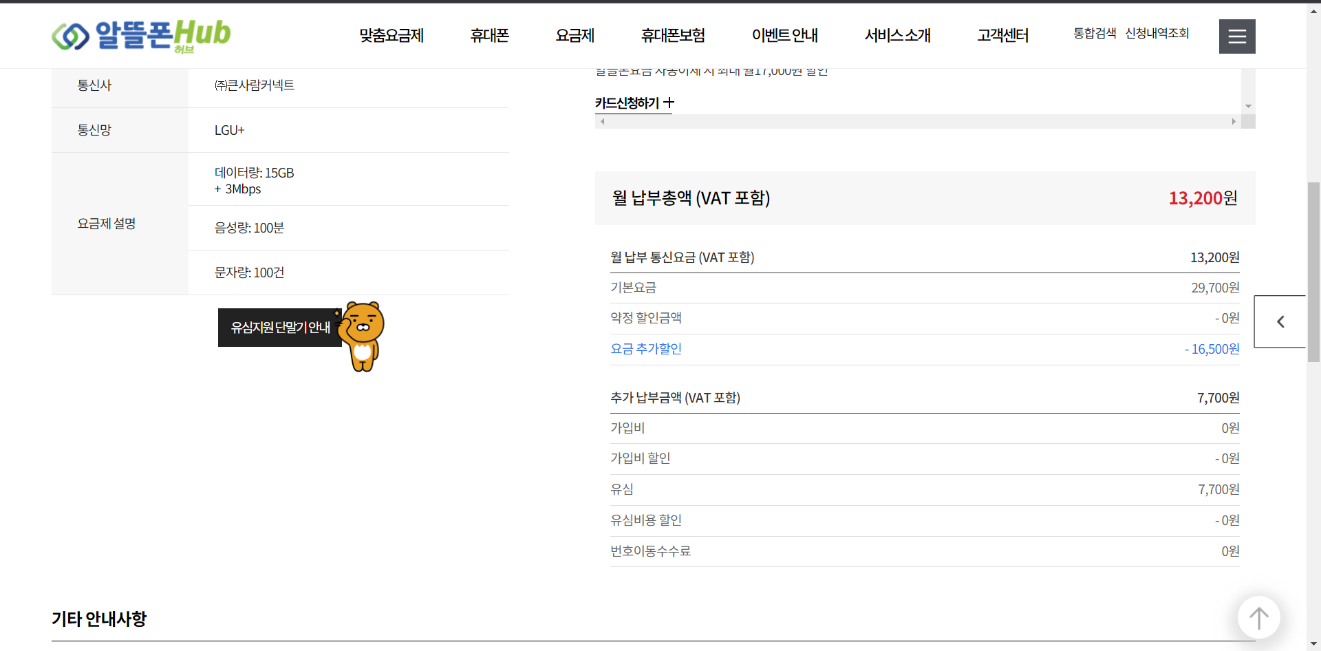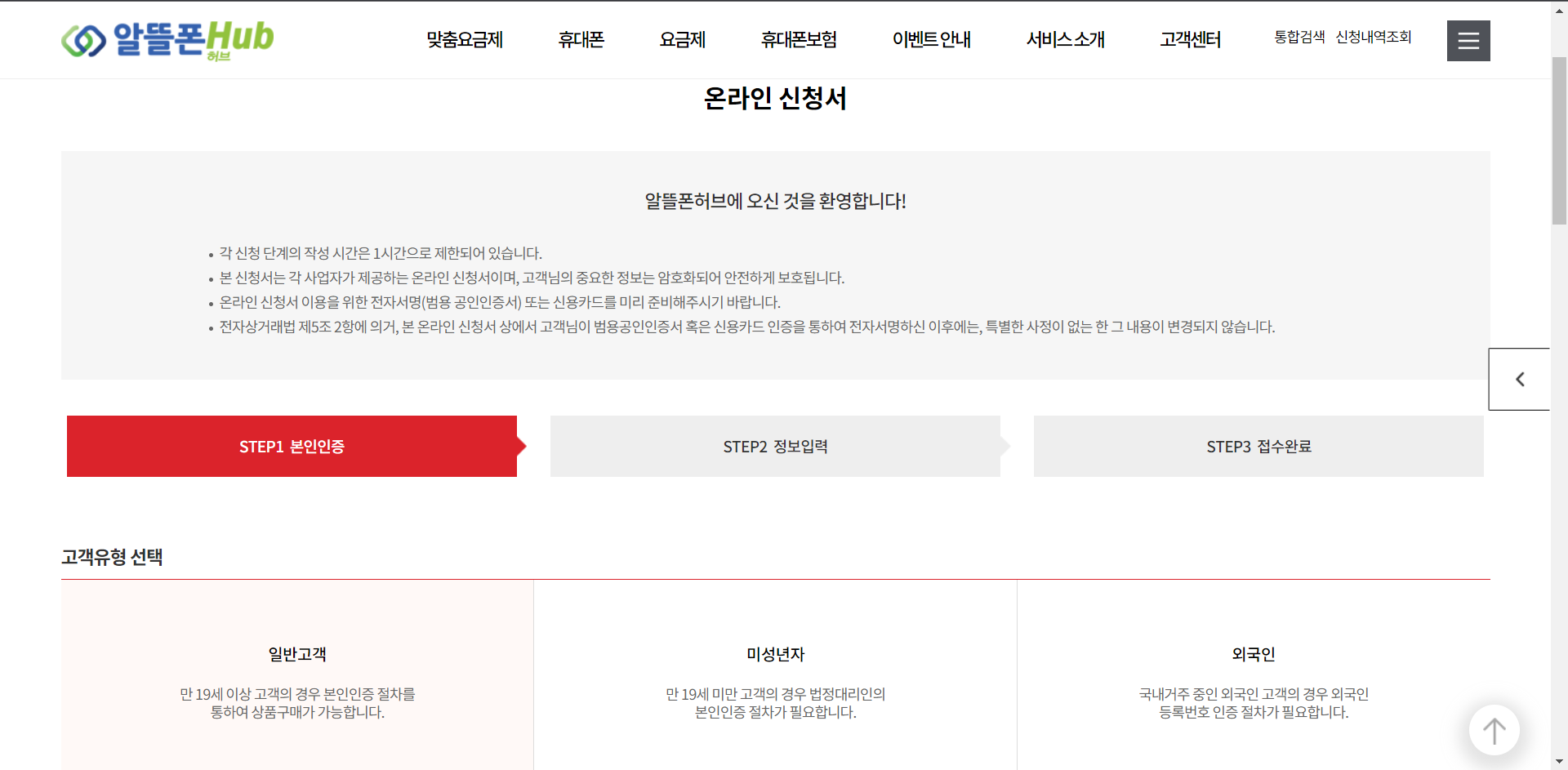 다시 알뜰폰 허브 사이트로 돌아와서 구매 과정을 이어서 설명하겠습니다.