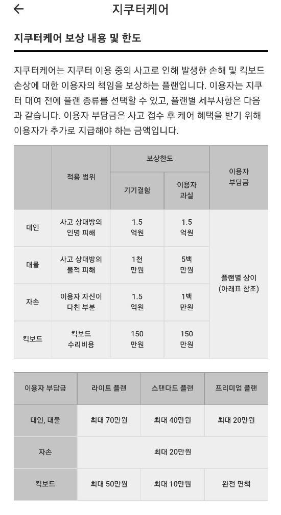 기존에 있던 보험도 청구해야겠지만, 지쿠터 자체에서 운영하는 보험도 있어서 소개해보려고 합니다.